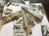 *Please keep in mind that these are printed on my personal home printer and are not commercially made. I cut all paper/note pieces by hand, and wrapping/envelopes are also hand made, so there may be some imperfections